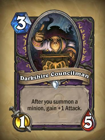 这张0费法术没别的优点,除了灵活铺场,而恰恰这都是术士需要的,尤其是配合恩佐斯的子嗣,简直瞬间爆炸,关于议员,这张卡在天梯的能力我想大家都 领教过了,jjc虽然稍差一点,但是依然是对面很头疼的东西,5血大屁股不好处理,强大的成长能力随便配合一个buff就把你打崩,事实证明术士新版版在 jjc最需要的是那些buff牌,可以意淫在jjc打出天梯动物园的快感