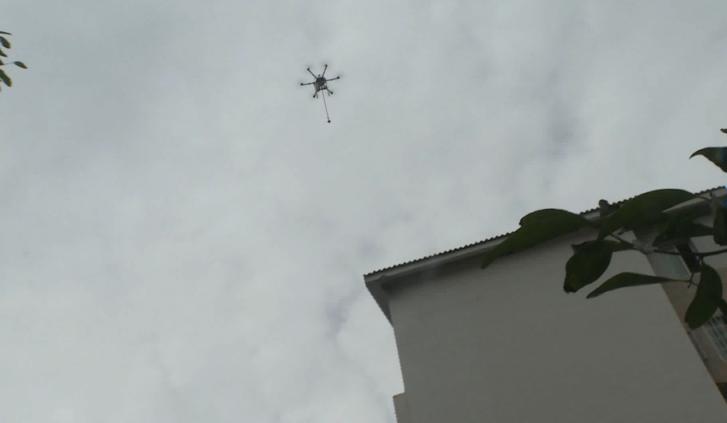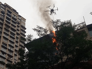 经过一番“校准”——确认“无人机的喷火喷头”已经瞄准马蜂窝后,操盘手很快“扣动了扳机”——展开了“火攻”、展开了火焰喷射!
