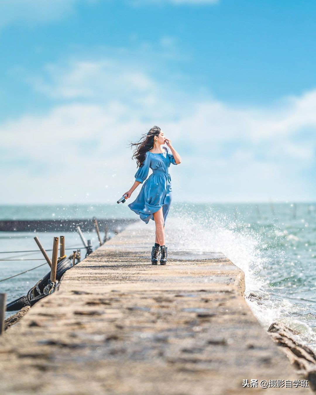 不要放过长廊。不要放过围墙。不要放过海浪和光芒。侧身轮廓感更强。仰拍震撼视角棒。