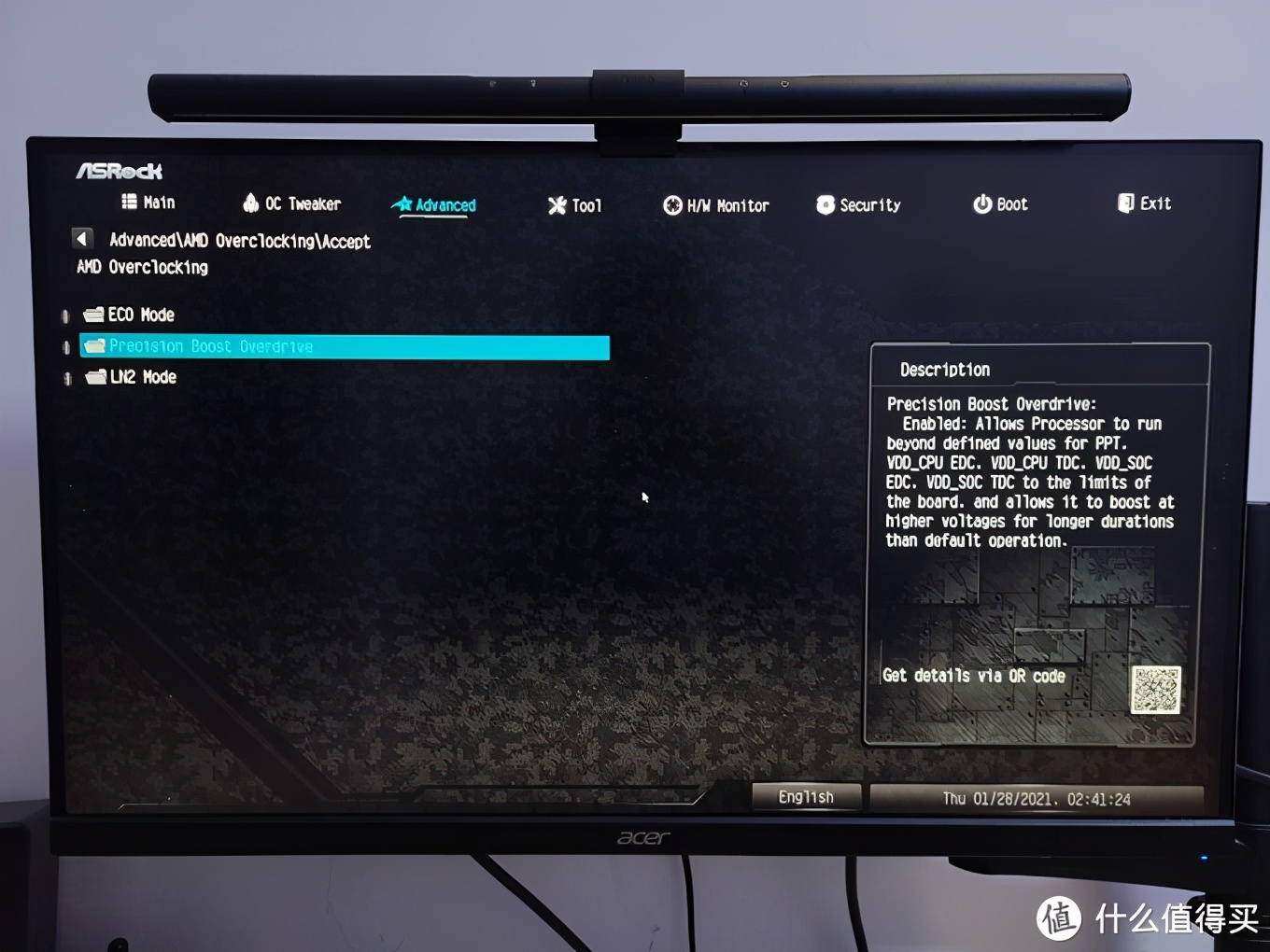 这里会跳出一个风险提示,不用管它,直接点accept接受。然后就可以看到Presision boost overdirve(PBO)设定了。