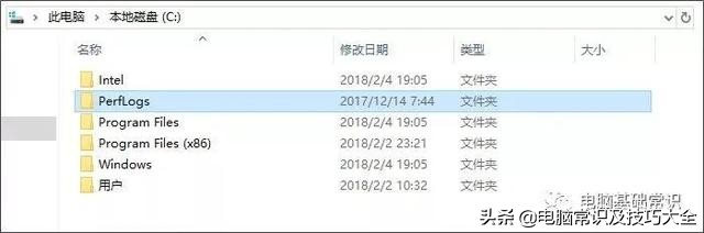 C盘主要包含以下文件夹:PerfLogs、Program Files、Windows和user文件夹。如果打开folders选项中显示的隐藏文件夹,还会找到ProgramData文件夹;此外,64位系统将有一个额外的Program Files (x86)文件夹。
