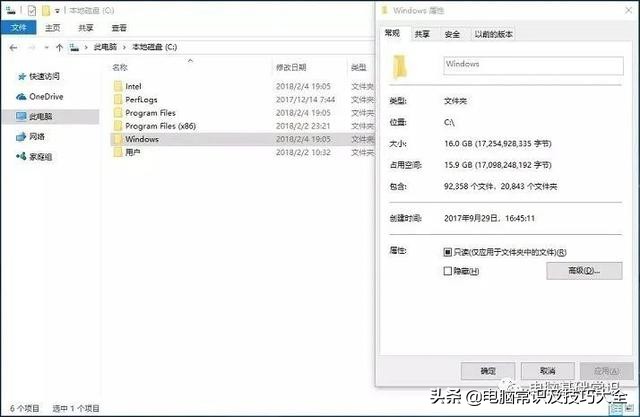 接下来是Windows文件夹,里面几乎包含了运行Windows所需的所有东西,一个接一个地说它简直要我的命。但当我们看文件夹属性时,它相当大,而且随着我们使用它的方式,它变得越来越大,所以它是最难清理的区域之一。
