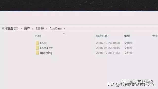 AppData文件夹根据安全级别分为Local、Locallow和Roaming三个文件夹。