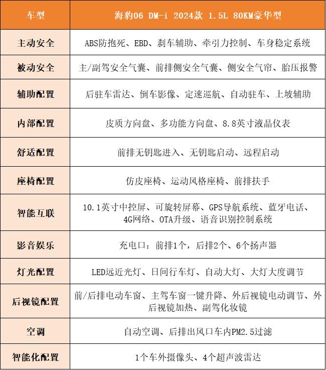 首先是入门款车型,海豹06 DM-i 2024款 1.5L 80km豪华型,我个人认为它并不适合家用,因为配置少的可怜,只能说是够用,日常使用并不会很舒服。所以这台车更适合网约车,价格足够低,油耗足够低就可以了。