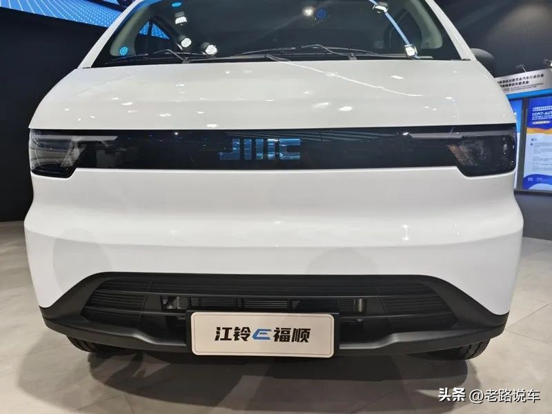 车辆两侧的灯组由一条黑色钢琴烤漆饰条相连,中间是江铃汽车新能源的新logo。