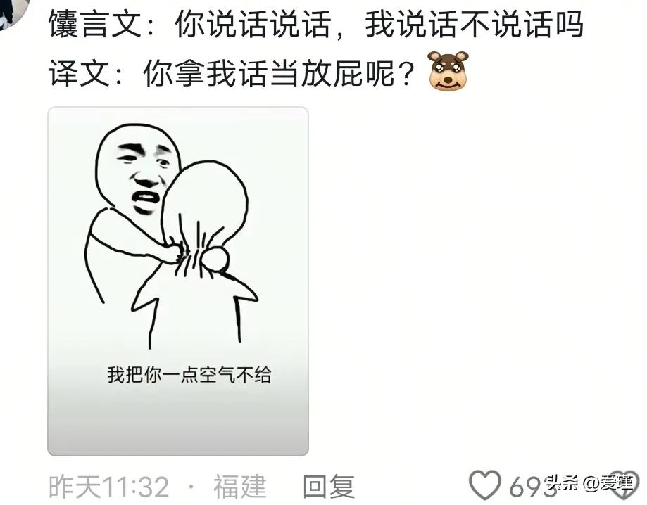 最近在网上刷到新疆的“馕言文”,觉得太有意思了,原本平淡无奇的话,从他们嘴巴里面说出来之后,就觉得特别生动形象,因为新疆那边的馕比较出名,所以网友们为它起名“馕言文” 这是一种比山东倒装句还要好玩的语言,以下就是网友们听过的各种“馕言文”: