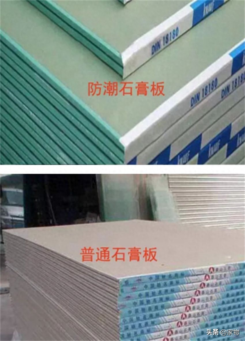 ②防水石膏板则将芯板和面层刷防水剂,提升板材的防水防潮性能,更适合运用在湿度大的环境内,一般厨卫中的石膏板吊顶多用的是这种。