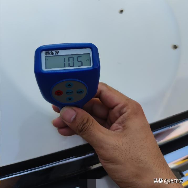 不过检测到后尾门时,发现存在喷漆的情况,后来和卖家聊天得知,这辆车是后挂改的底挂,后尾门原先是有个小书包的,那这就解释的通的,而且尾门也没有腻子修复的情况。