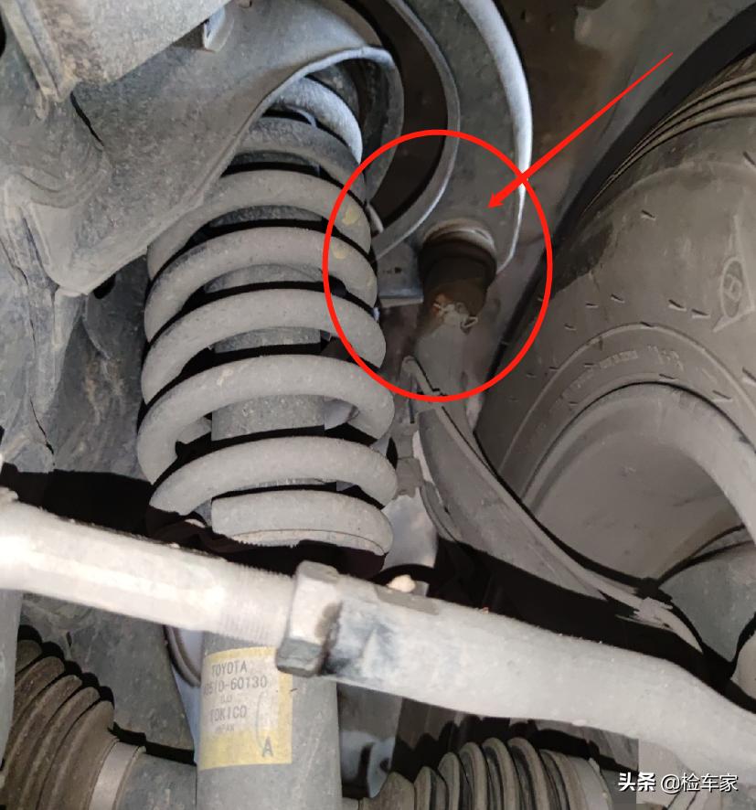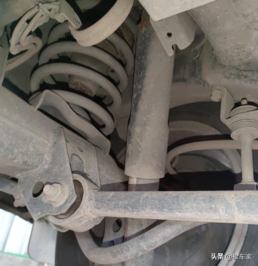 前悬挂整体没有大问题,就是上支臂存在一些油渍,大概率是存在渗漏的情况,但也有可能是水渍,具体还得清理干净再看看。