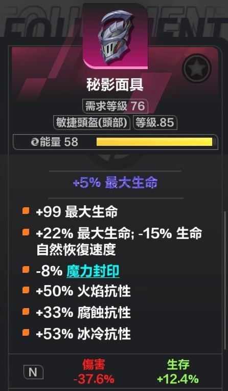 这件装备最麻烦的就是,它是实际抗性要相同,所以我们头跟鞋子的抗性需要去分配,其他地方有给抗性的也要弄掉。