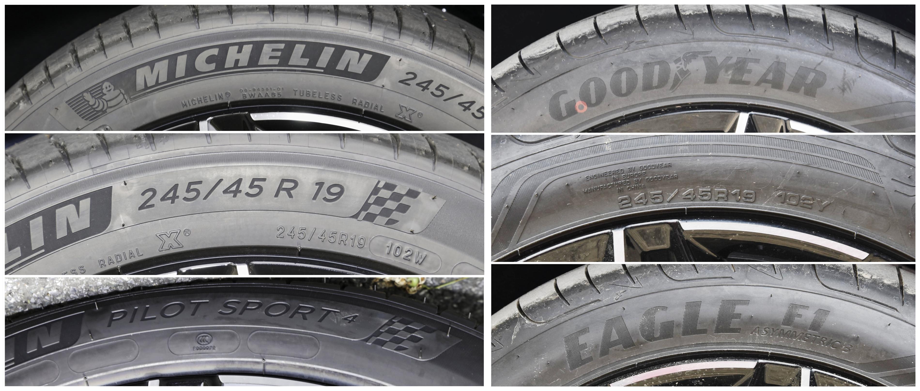 22款 创世版 610KM四驱尊享型使用米其林245/45R19 102W PILOT SPORT4系列轮胎或固特异245/45R19 102Y EAGLE F1系列轮胎。