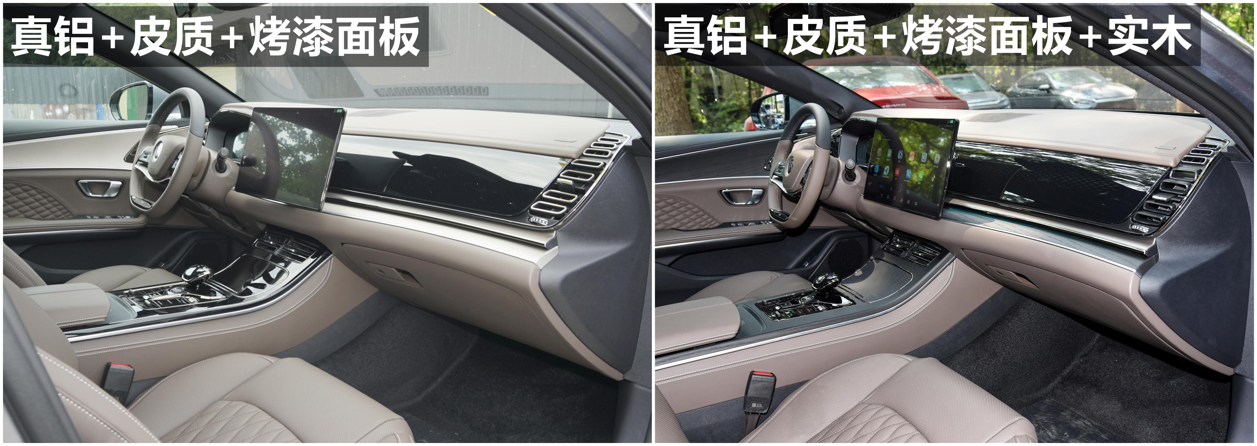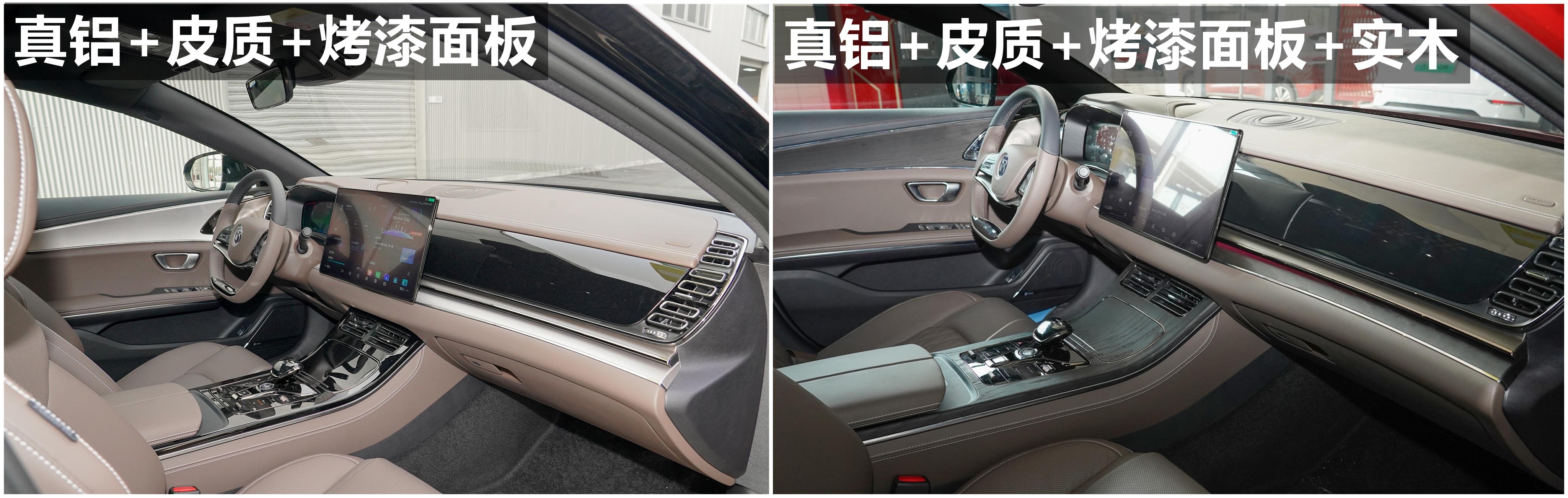 21款 标准续航版豪华型和20款 超长续航版豪华型内饰板由拉丝和丝网印刷的真铝饰板+皮质+钢琴烤漆面板组成;20款 超长续航版尊贵型和20款 四驱高性能版旗舰型内饰板由拉丝和丝网印刷的真铝饰板+皮质+钢琴烤漆面板+天然真木组成(非金鳞橙/凝夜紫内饰),如果是金鳞橙/凝夜紫内饰,内饰板搭配的则是拉丝和丝网印刷的真铝饰板+皮质+钢琴烤漆面板+碳纤维内饰。