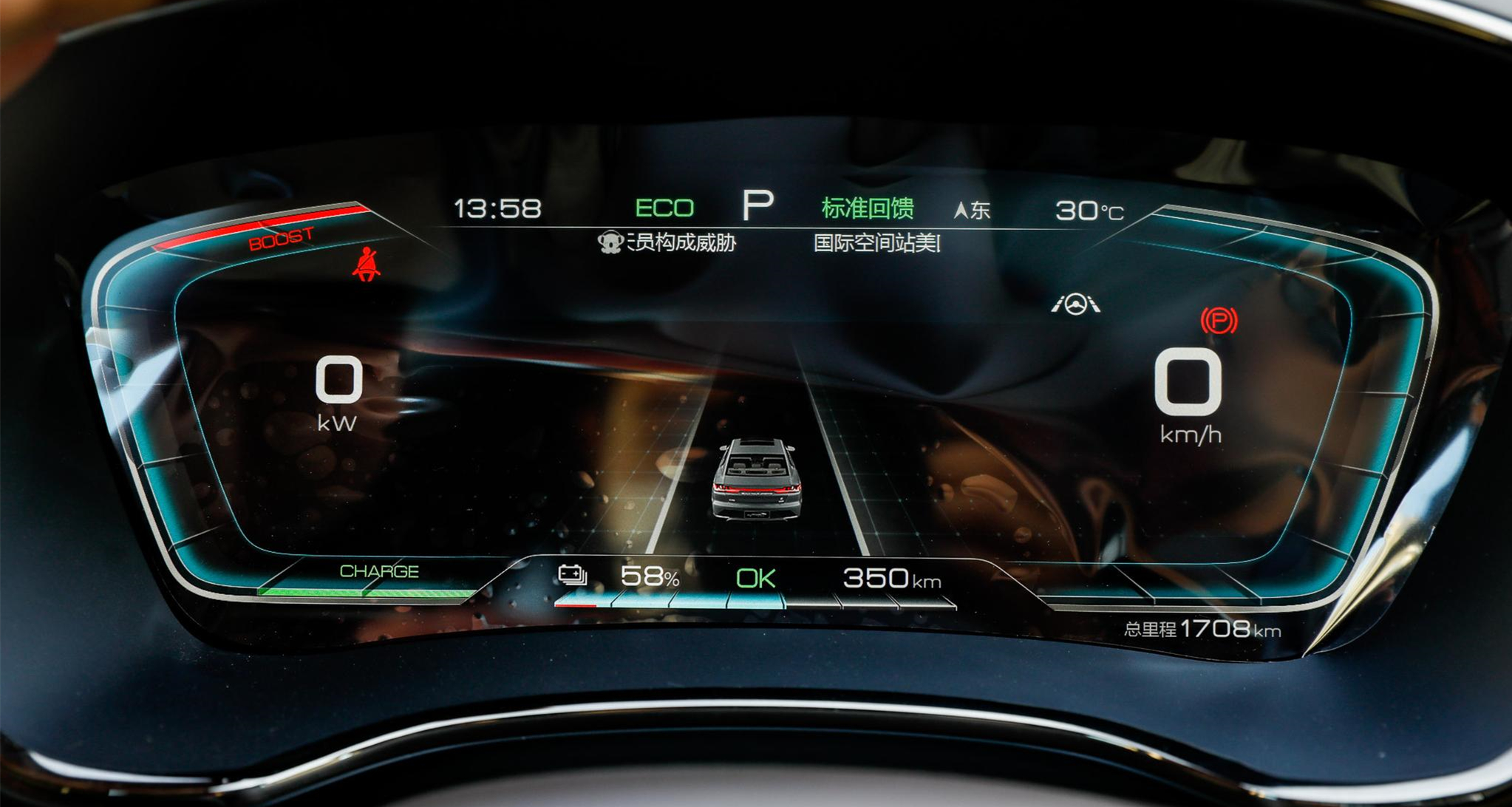 全系配备12.3英寸全液晶仪表,仪表主题可变,显示信息清晰而丰富,科技感十足。