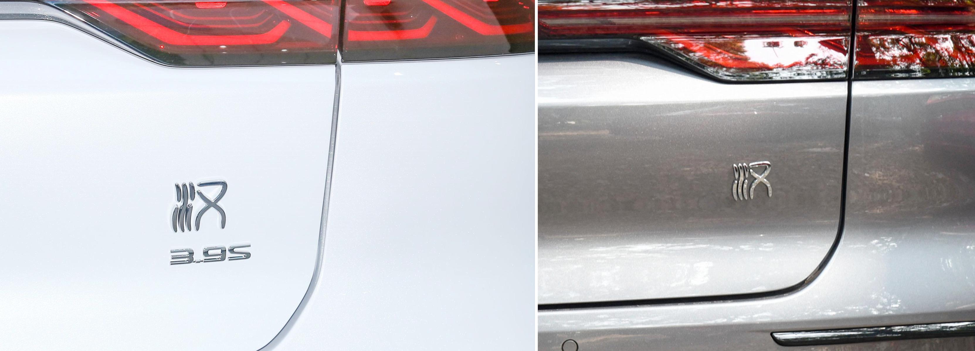 22款 创世版 610KM四驱尊享型、22款 610KM四驱千山翠限量版和20款 四驱高性能版旗舰型的右侧尾标带3.9S标识,彰显双电机零百加速3.9s的极速成绩,其他车型无。