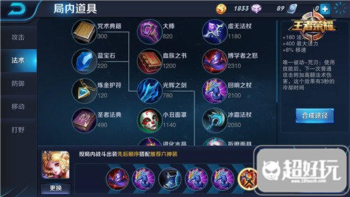 在出装方面,妲己主要以提升速度和法强为主,前期先加神速之靴+圣杯,之后依旧是大棒、冷静之靴、回响之杖,博学者的愤怒,最后出冰霜法杖。