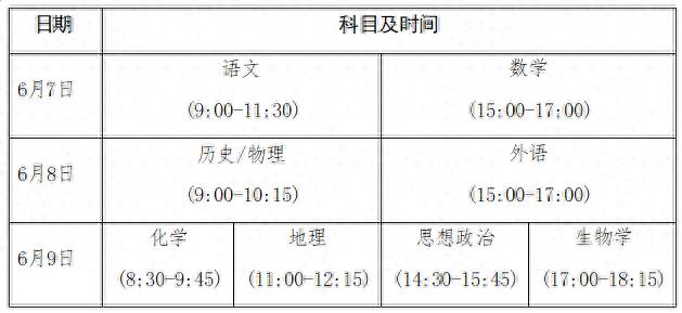 全国统考和选择性考试于6月7、8、9日举行,具体安排如下:
