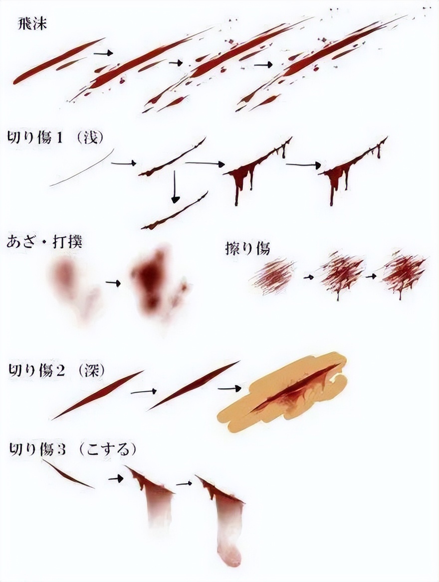 以下关于各种 “血” 的画法!血渍,血滴及伤口。收藏画起来!!!
