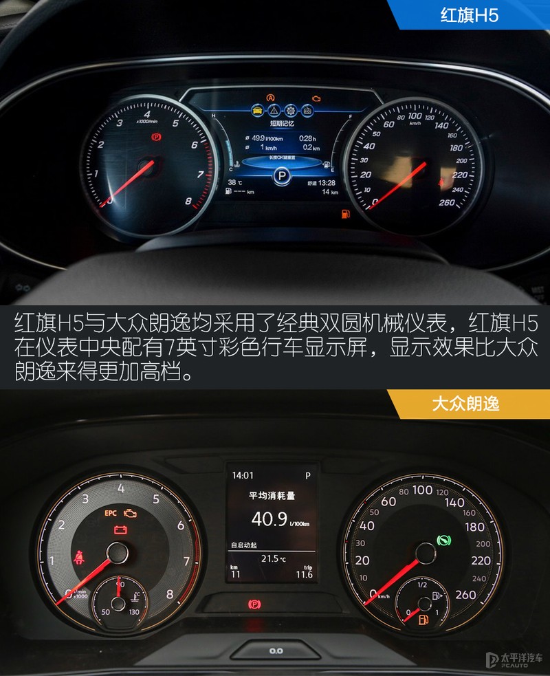 虽然红旗H5与大众朗逸都有一定的商务属性,但两台车的内饰都不是老气横秋,整体设计符合时下的潮流,同时内饰的用料也一丝不苟。