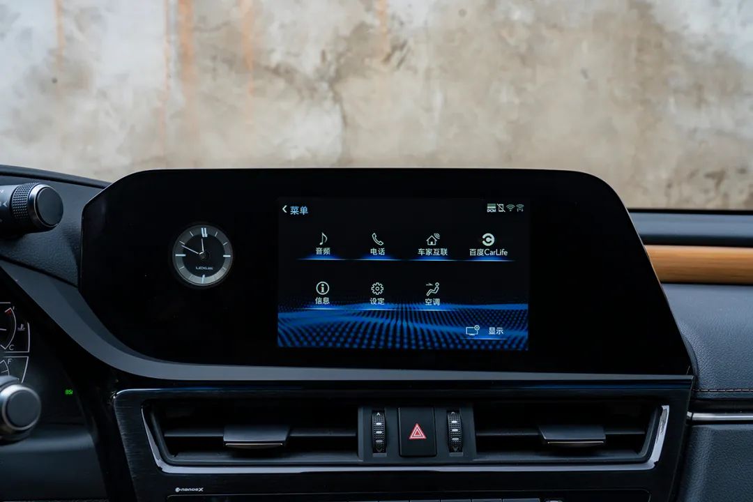尽管这台车的内饰还能看出“那个它”的影子,但是雷克萨斯独有的那种东方韵味和审美确实让人很服气。竹木的内饰加上黑色皮质和灰色磨砂饰条,独特的高级感被凸显得尤为浓厚。
