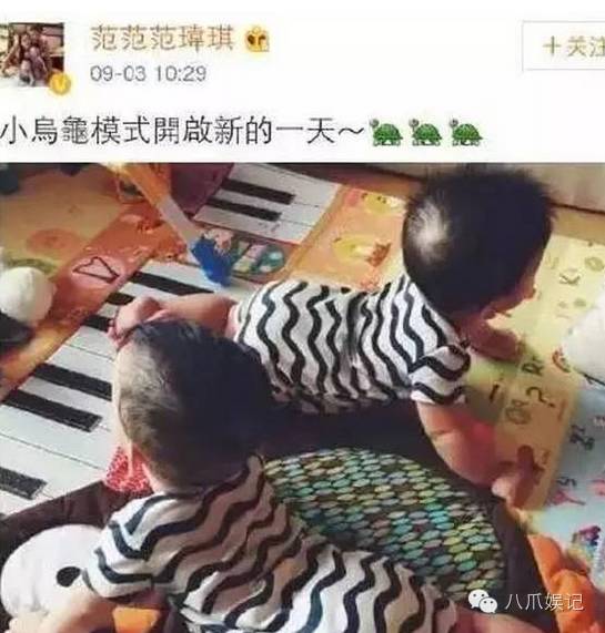 还有9月3号的阅兵因为范范在微博晒了下娃快被网友口水淹死啦!!范范自从升格当妈后,经常在脸书、微博分享双胞胎儿子照片,她在9月3日照例晒儿,刚好是大陆阅兵,被网友批:“别的明星都在秀国家,而你们还在秀孩子。”