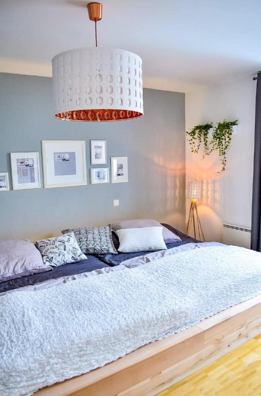 后期等到选好合适的床品,直接将适合大小的床垫放在床板架上,铺上被单和被褥,一个超大的双人地台床就完美呈现我们眼前了,不比木工打制的差多少,因为是旧的木床改造来的,所以污染物都挥发的差不多,环保性更高,有利于家人的健康。