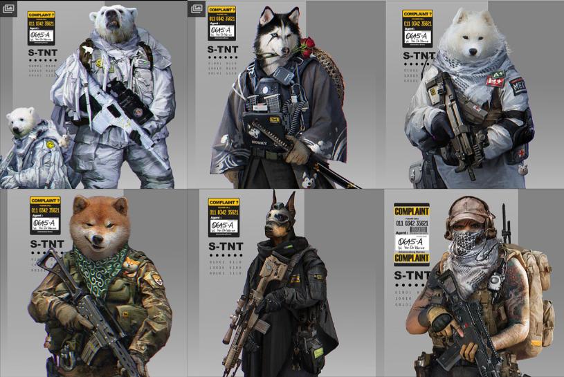 柴犬、北极熊、鳄鱼、花豹、老虎、萨摩耶等等,这些原本凶猛或者呆萌的动物形象,在林老师的画笔之下披上了军备,穿上了各具特色的服饰,成了战场上最为凶悍的士兵。