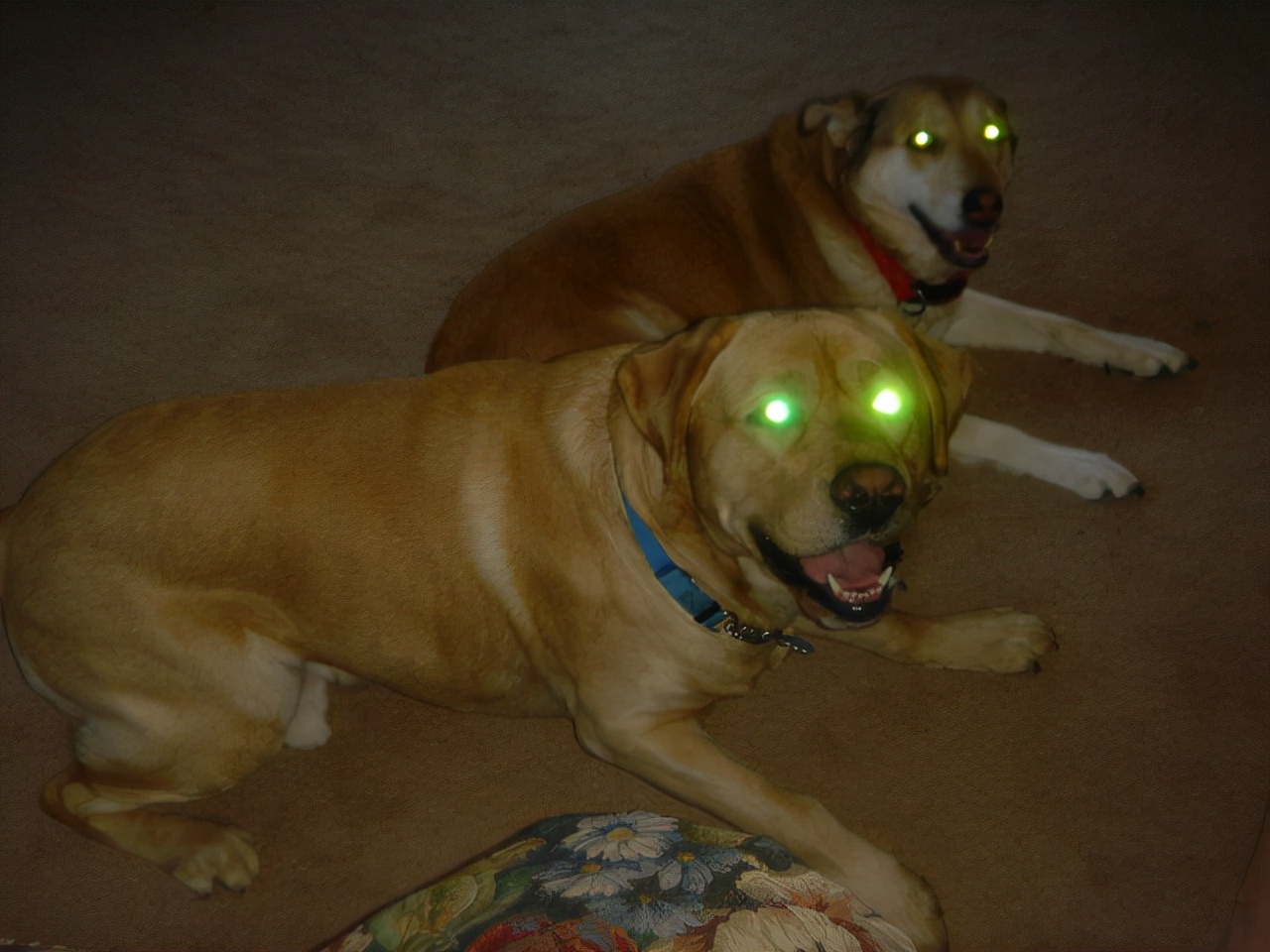 灯光照射狗眼睛后发出绿光