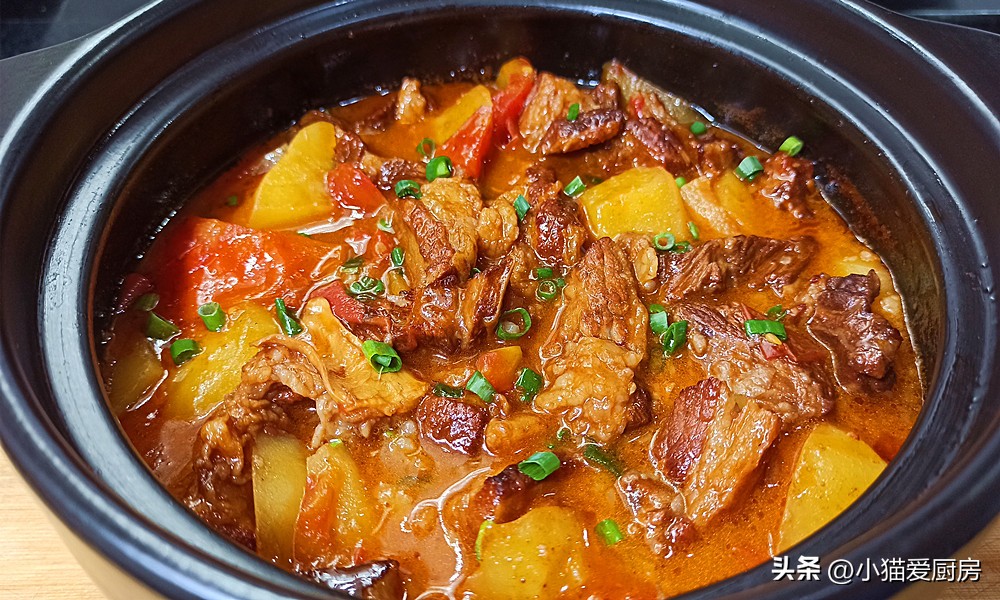 西红柿土豆炖牛腩这样做,软烂入味,汤汁浓稠,年夜饭做来吃不错