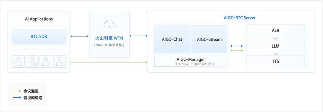 WebRTC 传输网络(WTN)方案:对于在客户端拥有自主研发音视频技术的企业,火山引擎提供了基于 WebRTC 标准协议构建的传输网络(WTN)。通过接入 WTN,企业能够轻松获得全球范围内的超低延迟、稳定可靠的实时音视频传输服务,提升端到端多模态大模型的响应效率。