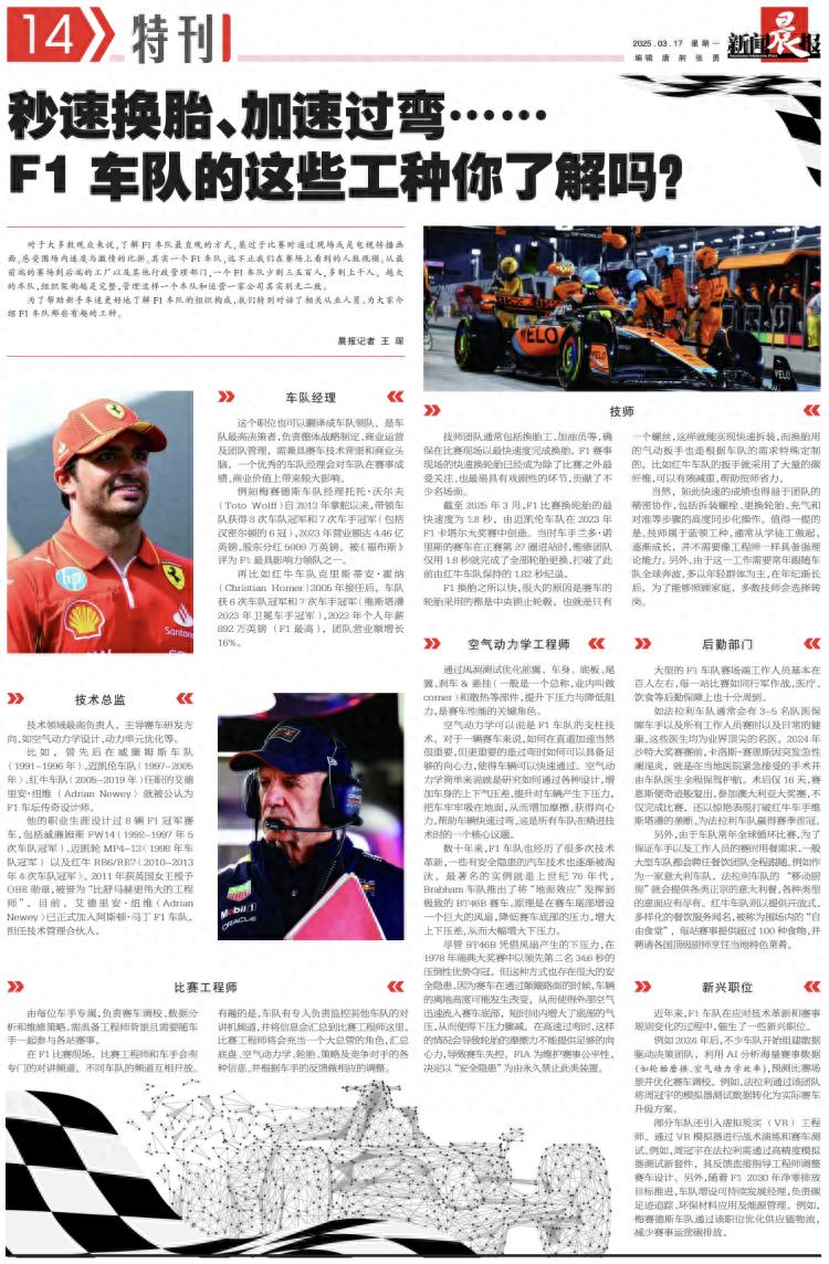 近年来,F1车队在应对技术革新和赛事规则变化的过程中,催生了一些新兴职位。