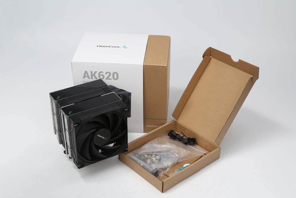 AK620风冷本体登场,散热器三围129mm X 138mm X 160mm,可以适配大多数主流机箱。同时,作为一款双塔风冷,AK620也可以完美适配高度43mm以下的内存,更高的RGB内存则需要将前置风扇后移。