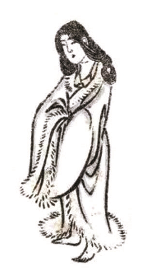 要说《山海经》图像的对外传播,首先要说影响最深的日本。日本至晚在奈良时代(710-794),《山海经》就已经传到了日本。1997年,日本新潟县出土了一片木简,这是一块奈良时代前半期的圆形版画,其中上半部画着一个人绑在树上,表情似乎比较痛苦;下半部画着一个人在地上蜷缩。日本学者指出,版画里下面的神人,就是《山海经》中蛇身人面的窫窳,它被危所杀;天帝为了惩罚危,将他反绑在树上,上面的神人自然就是危了。