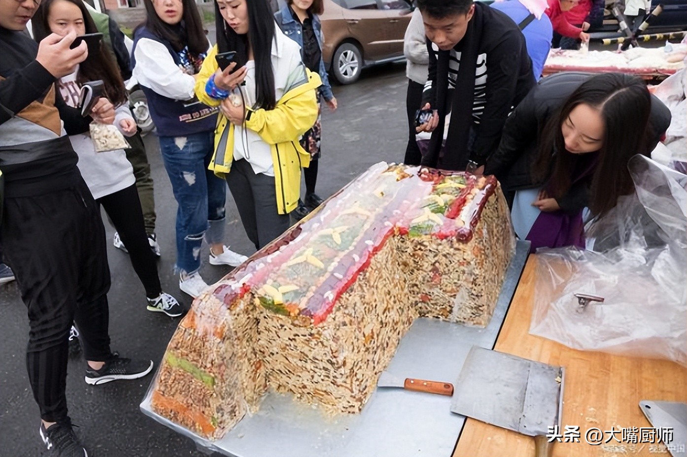 三轮车上那一整块切糕看着不大,但就有400斤重,比一头猪还重呢!