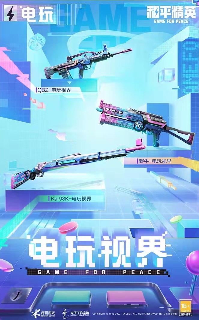 枪皮肤一共有3款,分别是QBZ、野牛、98k,这3款皮肤的外观还是很不错的,感觉有点像之前SS13赛季的“镭射皇者”系列,不过这个系列的皮肤细节更丰富一些。