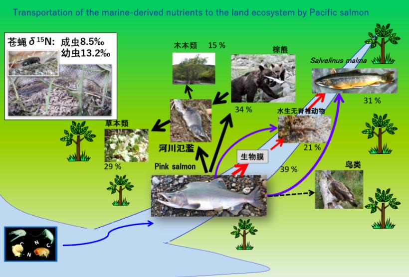 这样子看来,鲑鱼就像是一个担任着营养传输者的角色,它们的一生虽然在淡水和海洋中来回,但是却在无形中跨起了海洋和内陆的营养桥梁,提升了河边和周边环境的营养水平,维持了生态平衡和生物多样性。