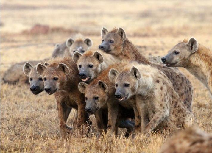 同族群间的斑鬣狗之间很少会互相争斗,顶多动动嘴皮子,吵吵架,就完事儿。但它们真正的团结和凝聚力则体现在集体捕猎上。