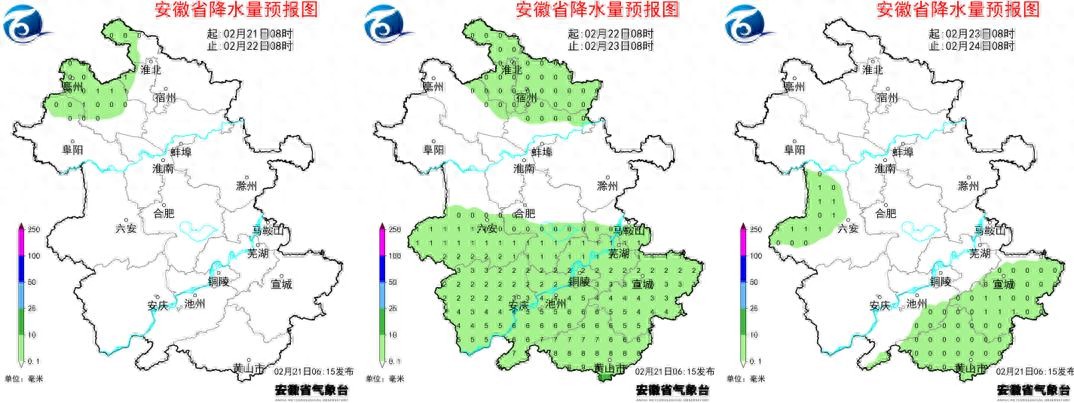 降水:21-25日我省南部地区多阴雨天气,其中22-23日高海拔山区有雨夹雪或雪;3月1-2日江淮之间部分地区和江南有小雨;其余时段我省大部分地区以多云天气为主。