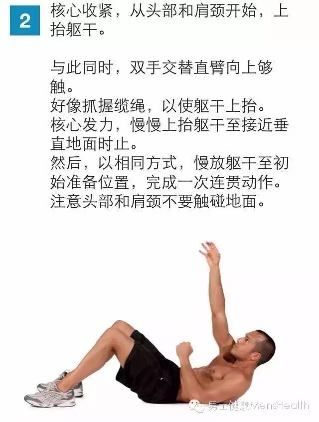 下面这组训练,只要能坚持下来,动作标准,你会感觉到腹部有明显的撕裂感。坚持下去,几个月之内你就能将平滑的腹部练出迷人的8块巧克力腹肌。