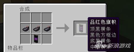 首先我们要准备一些做旗帜的材料,这些材料有羊毛、木棍和很多很多的墨囊。具体这里要使用品红色的羊毛六个,木棍一个就够了还有20个墨囊,具体步骤见下图: