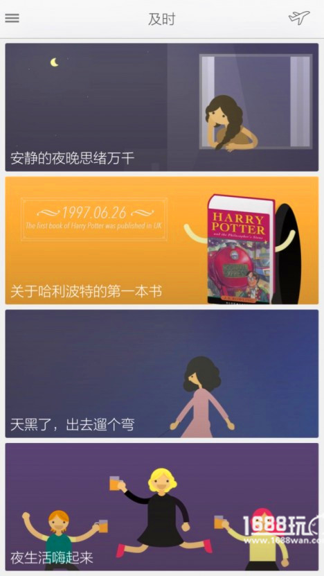 章鱼FM依然是一个电台,但和JingFM之前的理念有些差别。章鱼FM希望用算法尽量减少用户体验音乐的步骤,更容易地发现和听到适合自己的音乐,找到自己所属于的song天地。打开应用,UI和交互就不提了,技术水准十分高。首页是“及时”页面,给你推荐你可能会喜欢的电台。之所以叫“及时”,不仅对应着产品的Slogan “及时行乐”的肯定,也暗示了这里使用了时间作为给用户推送电台的依据之一!