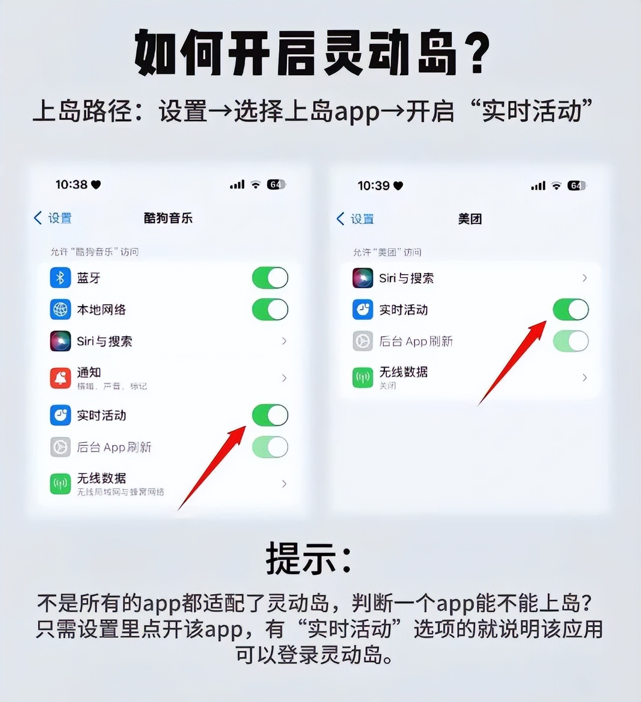 上岛路径:设置——选择需要上岛的app——开启“实时活动”