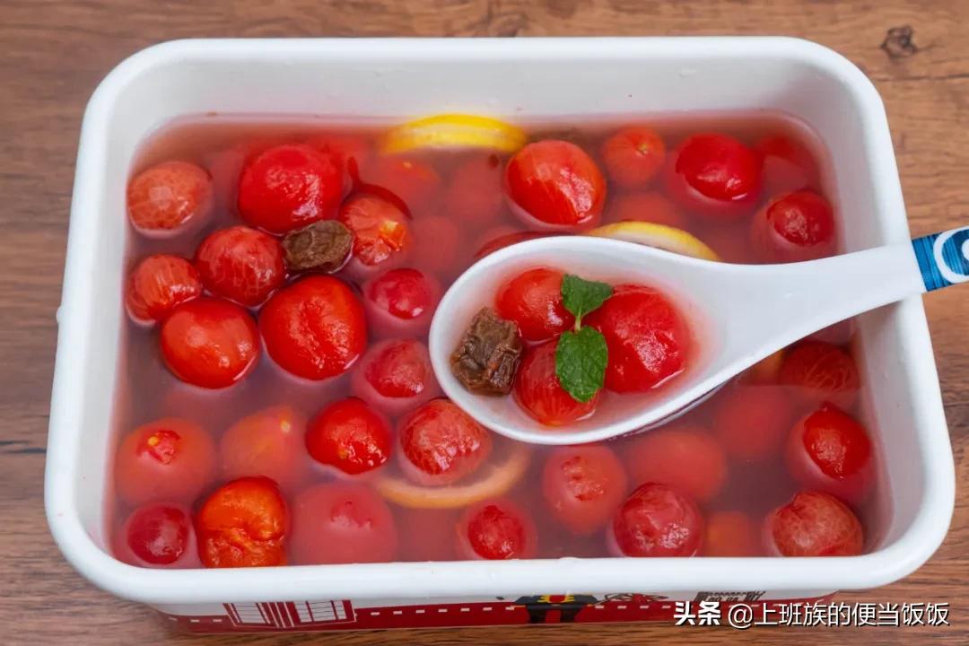 小番茄泡在这冰镇的话梅汁里,咬一口酸甜冰爽的汁水就在嘴里爆开,太绝了,赶紧出门买小番茄去!