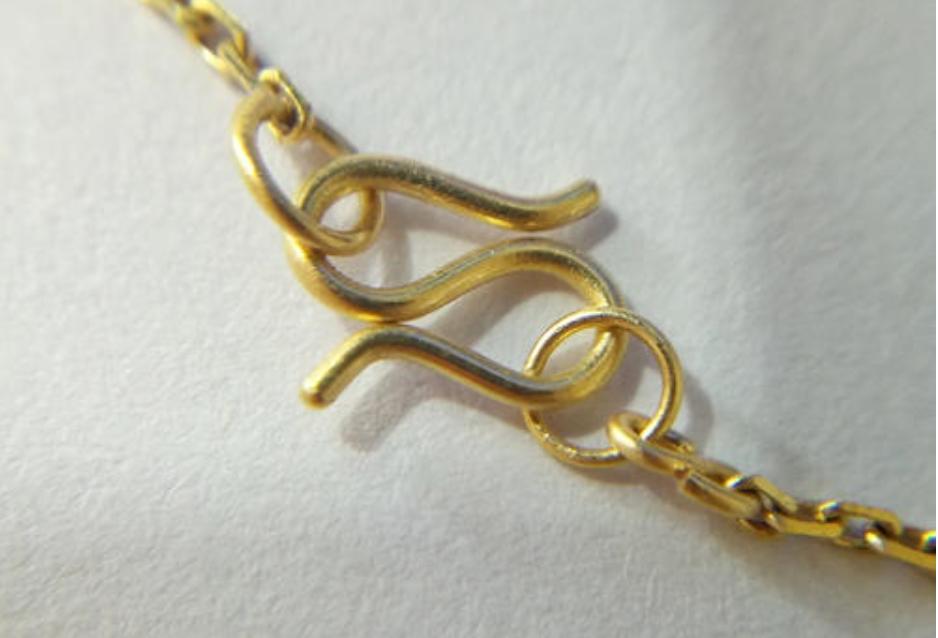 S扣和M扣本质上是差不多,都是用手去开合进行打开关闭。它的优势就是整体偏小,隐蔽性更强。如果想要你的黄金首饰项链整体观感更自然顺畅,S扣就是一个很不错的选择。