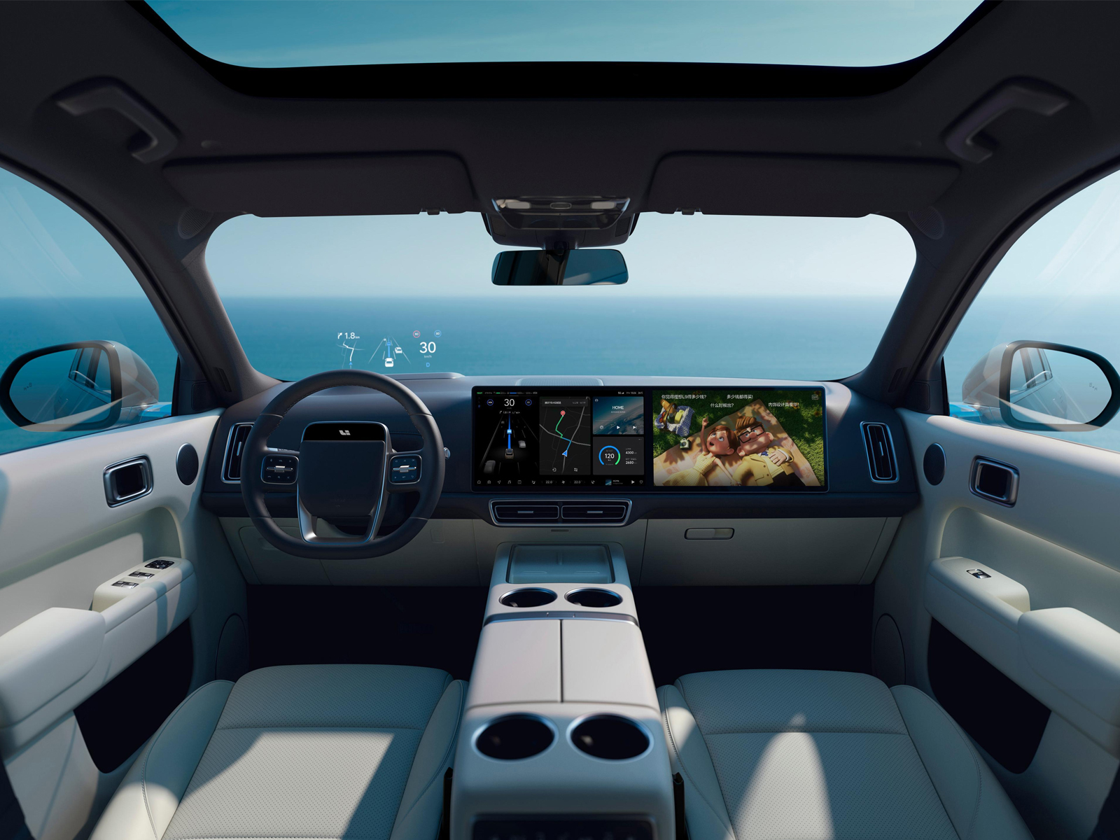 要说到内饰科技感,前端时间才刚上市的理想L9肯定是绕不开的车型。它可以说是把车内的交互和娱乐做到极致。前排的中控屏和副驾驶娱乐屏均使用15.7英寸的OLED屏幕,3K的高清分辨率在车载屏幕里也已经是上游的水准。屏幕内置的是高通骁龙8155芯片。我们的编辑亲身体验过,车机系统反应速度快,几乎没有任何的卡顿现象,表现值得点赞。