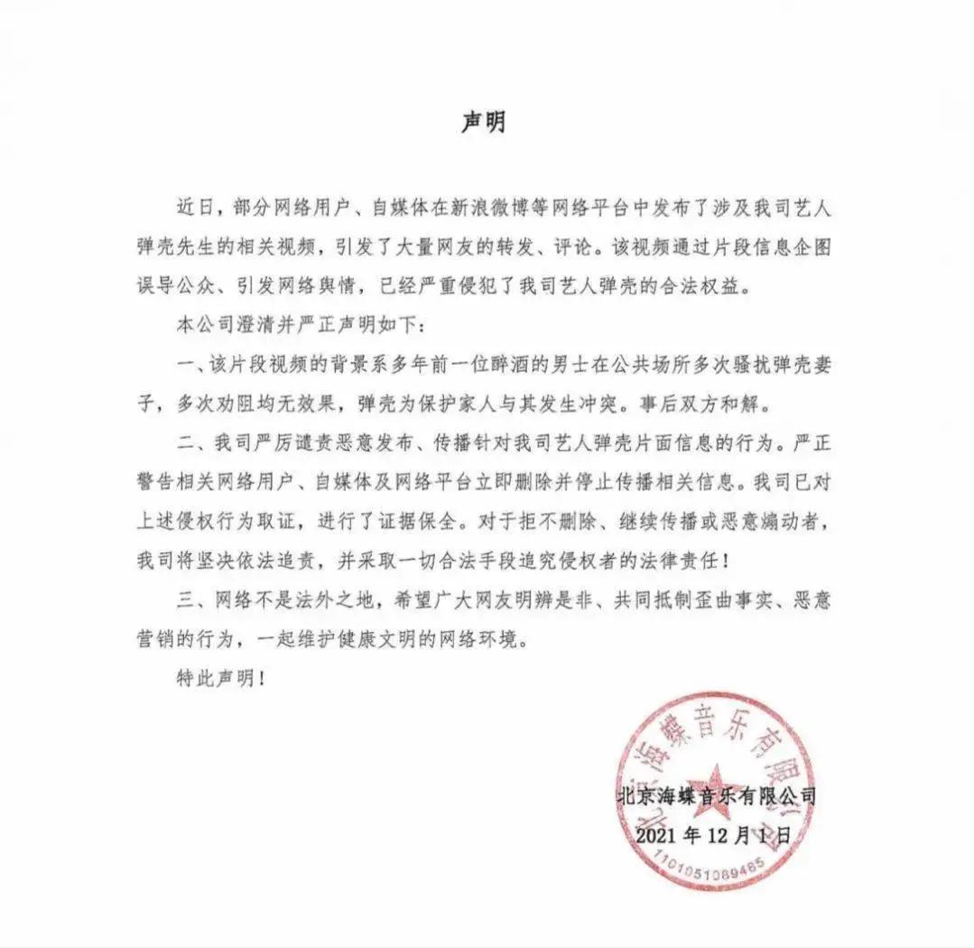 弹壳打人的事情闹得沸沸扬扬,很快登上热搜榜。紧跟着弹壳工作室回应说:该醉酒男士多次骚扰弹壳的妻子,弹壳为保护家人才发生冲突,事后双方和解了。