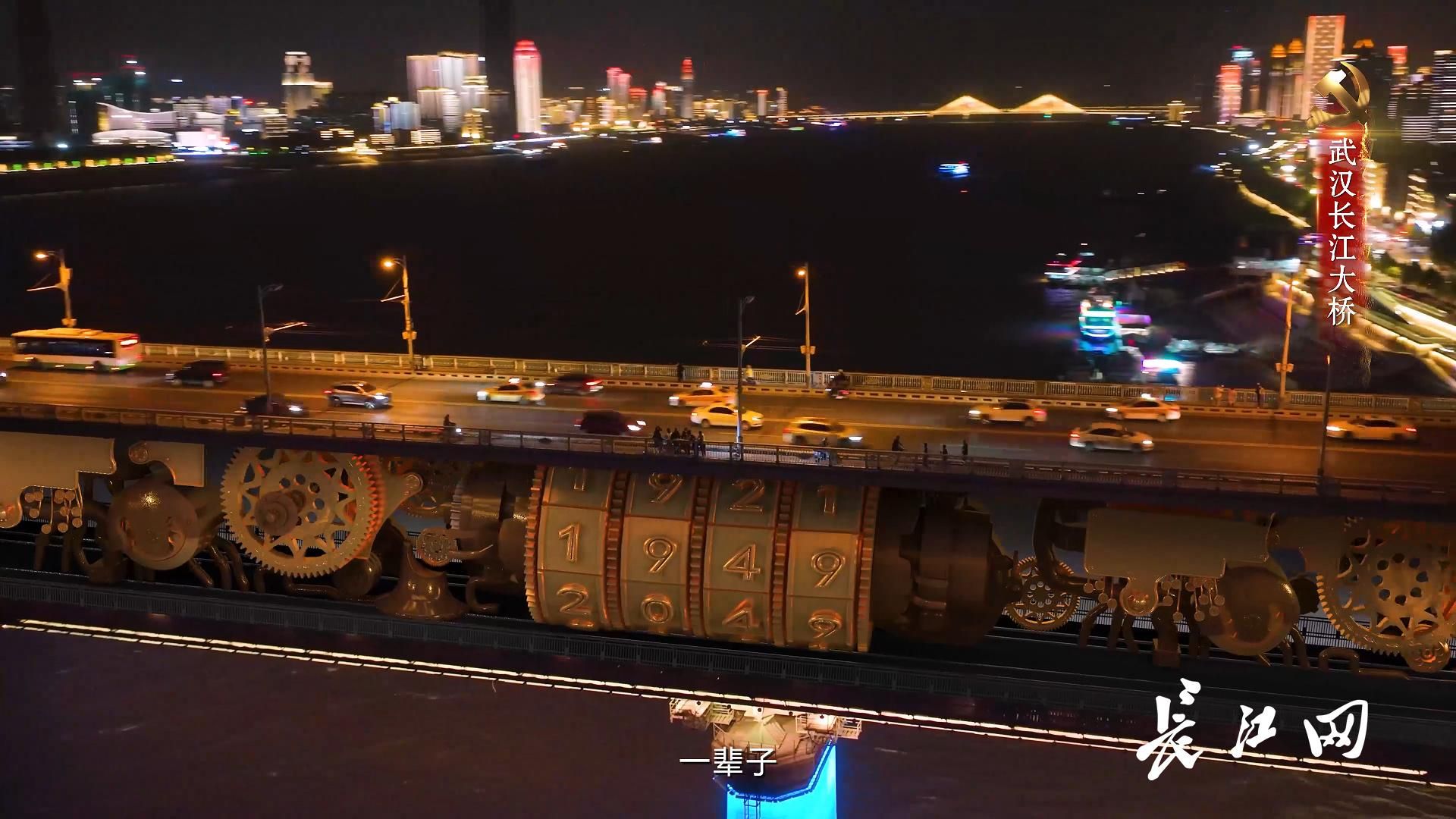 红色主题MV中的场景。现实与想象水乳交融。武汉长江大桥上车水马龙,底层向前矫健转动的齿轮上镌刻着三个神奇密码。1921年中国共产党建立,1949年中华人民共和国成立,而2049年将是中华人民共和国成立100年的华诞。