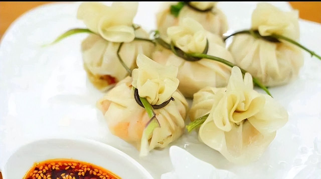 第十三种吃法:玫瑰蒸饺,饺子皮擀薄一点,如上图所示依次排开,将肉馅儿放在上面,对折卷起来,玫瑰饺子就包好了,上锅蒸熟即可出锅装盘。
