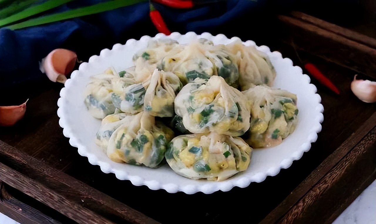 第八种吃法:纸皮包子,饺子皮擀薄皮,再调一个三鲜馅儿,提前切碎的韭菜、炒熟的鸡蛋、剁碎的粉条,简单调味,包成薄皮包子,上锅蒸至10分钟即熟。