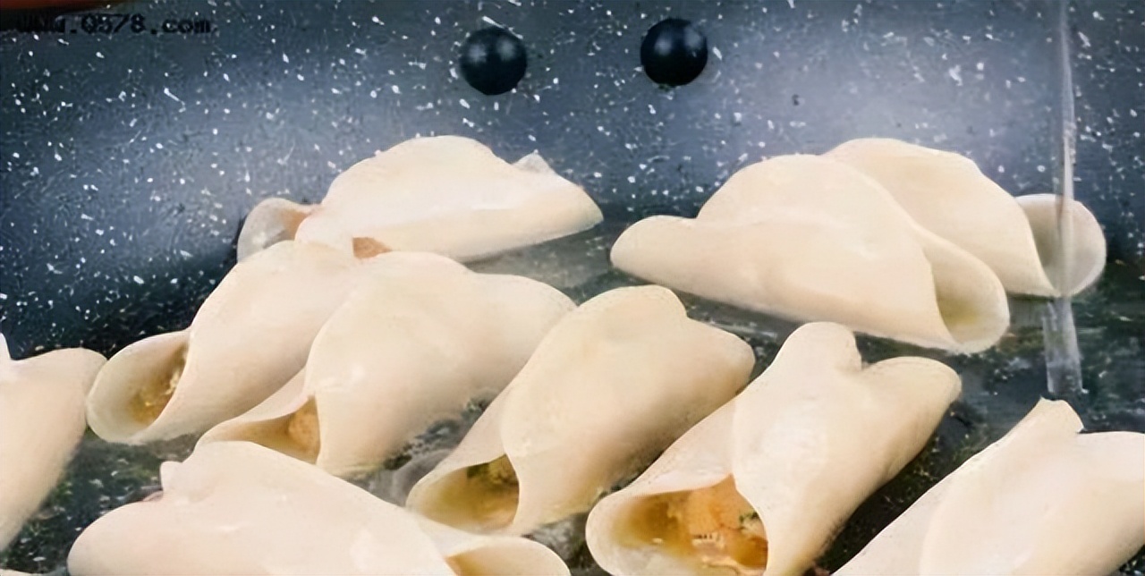 第十二种吃法:煎饺,包好的饺子不用煮,直接放入油锅中煎制表皮金黄,淋淀粉水,水分完全蒸发,即可出锅装盘。