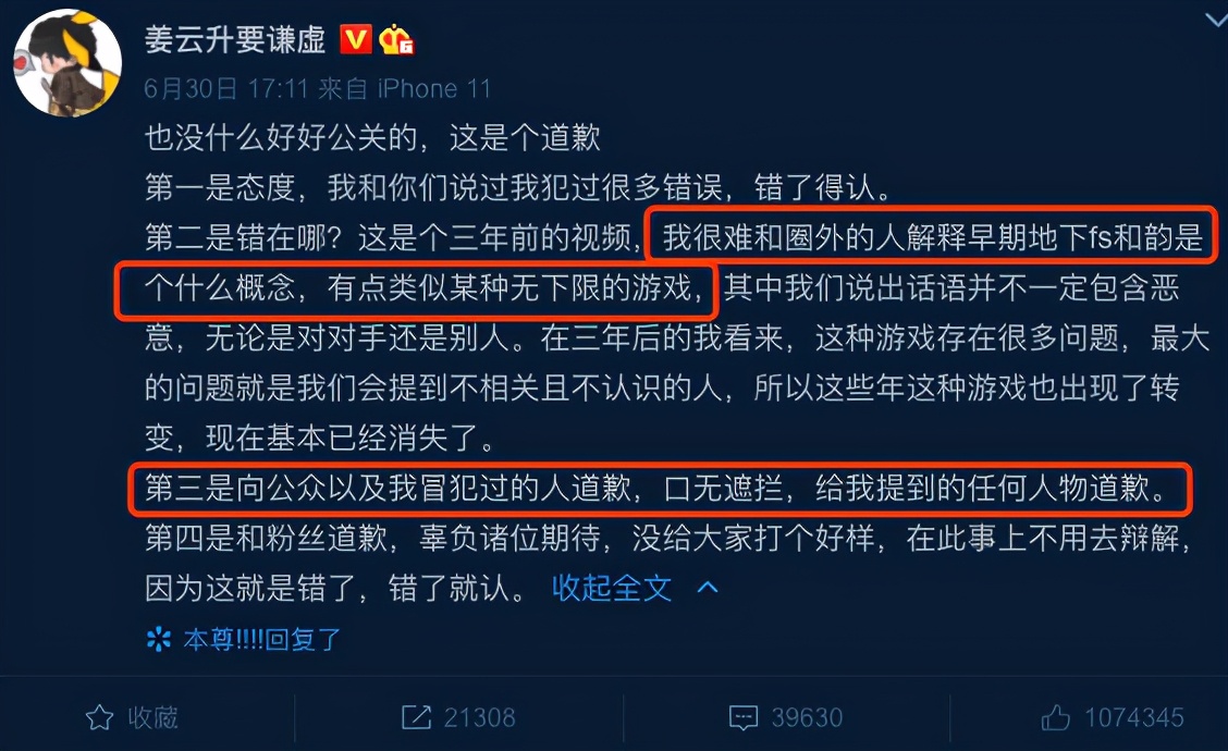 “我很难和圈外的人解释早期地下fs和韵是个什么概念,有点类似某种无下限的游戏”,总之就是在解释自己的行为不一定包含恶意。